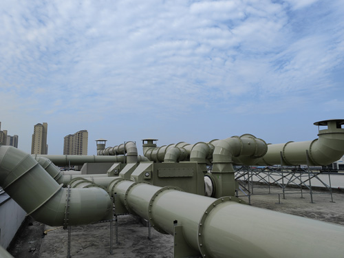 試驗室煙粉塵 → 親水性炭進行管道過濾器 → 引生產的風機 → 尾氣排放標準